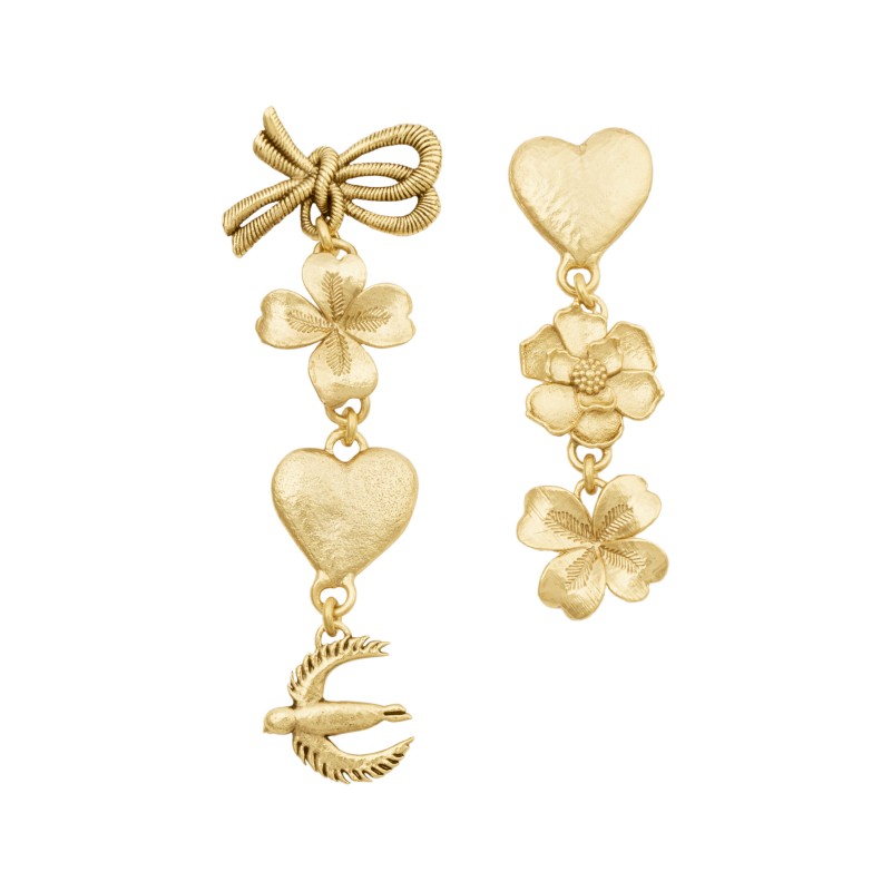 These Earrings celebrates the Maison's natural spirit with the Maison's talismans: a flower, swallow, and heart.