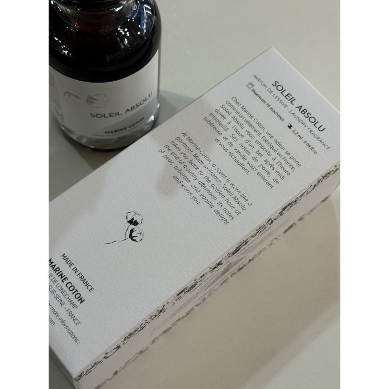 Fabriqué à Grasse, le Parfum de Lessive Soleil Absolu vous emporte à l’heure dorée à l’issue d’un bel après-midi ensoleillé. Ses notes de poire, de tubéreuse et de vanille vous enivrent et vous réchauffent.