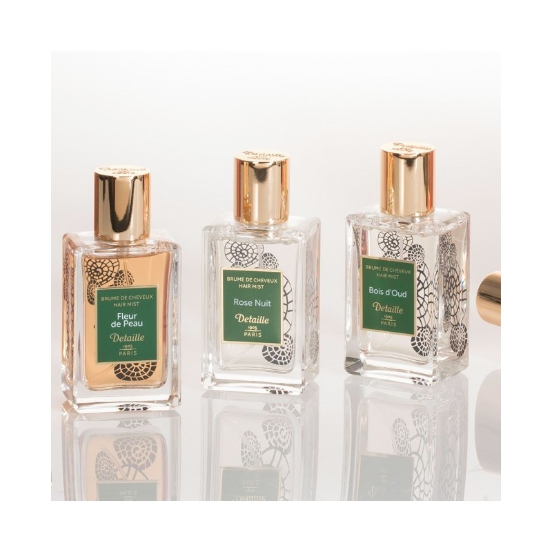Maison Detaille loob ainulaadse ja rafineeritud juuksesudu, millel on kahekordne lubadus : hooldab juukseid, tuues samal ajal sõltuvust tekitava parfüümse loori. Esivanemate praktika ja peen naiselikkuse puudutus, Detaille muudab selle žesti veelgi võrgutavamaks, kuna valem integreerib hoolduse eelised. See ühendab glütseriini ja aquaxyl ® juuksekiu ja peanaha sügavniisutamiseks. Tekstuur on pehme ja kerge, juuksed on siidised ja läikivad.