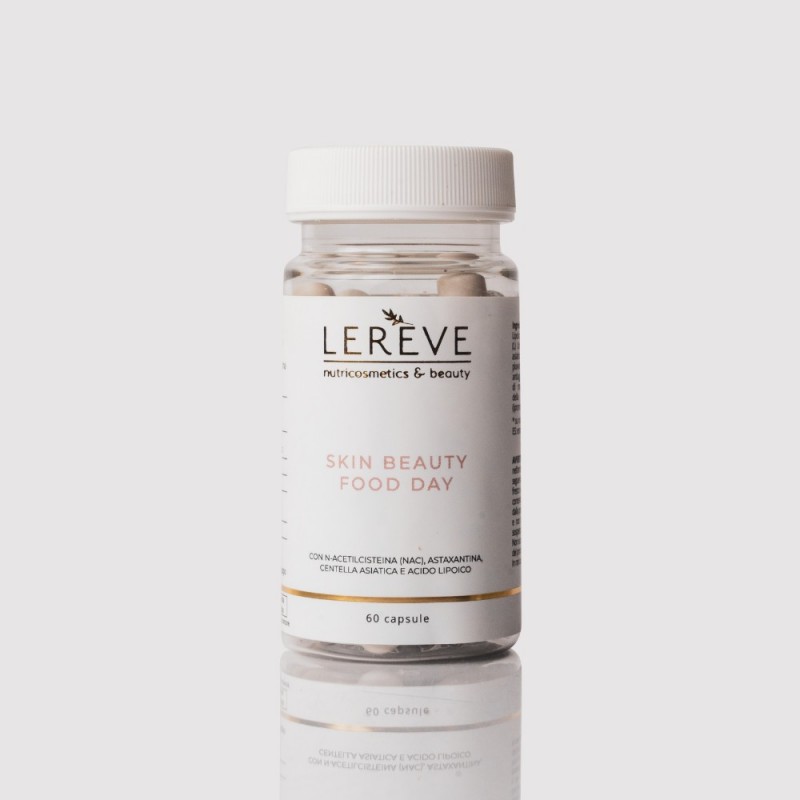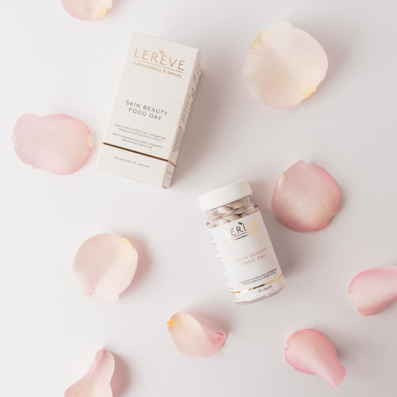 Skin Beauty Food – Day sisaldab väärtuslike koostisosade kompleksi, mis on loodud naha ilu taastamiseks ja vananemisprotsesside aeglustamiseks. Lipoehape, astaksantiin ja aasia vesinaba, mis kõik on valemis väga kõrges kontsentratsioonis, võitlevad naha nähtavate vananemismärkidega seestpoolt, jäädes samal ajal kaitstuks ilmastiku väliste rünnakute eest. Selle tulemusena tundub nahk niisutatum, lõdvestunum ja peened jooned vähenenud.