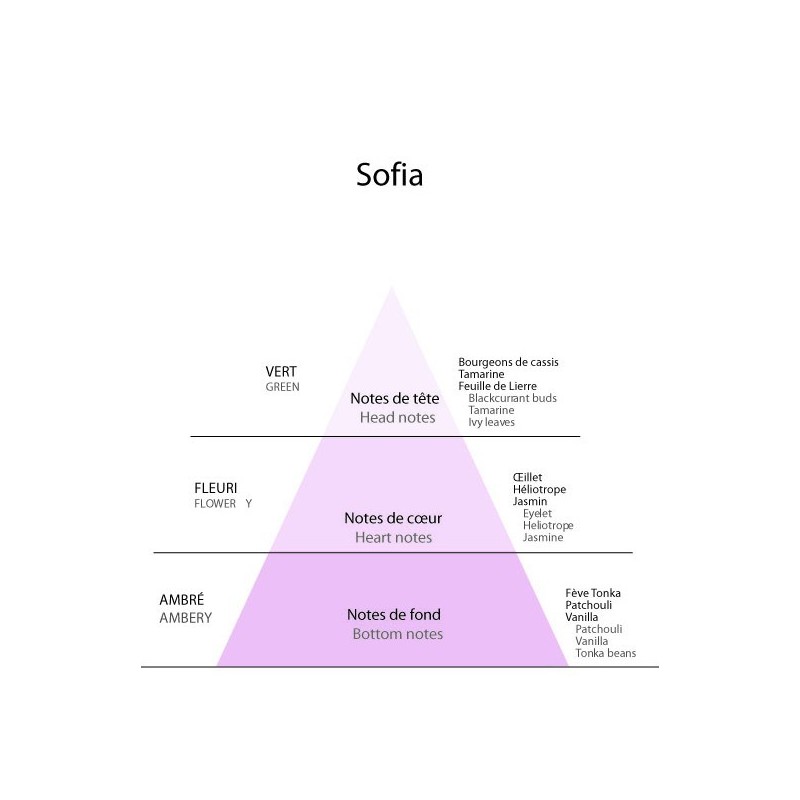 Sofia - цветочная гармония для мощного и загадочного аромата. Удивительный аромат, играющий на контрастах, чтобы раскрыть неповторимую индивидуальность.