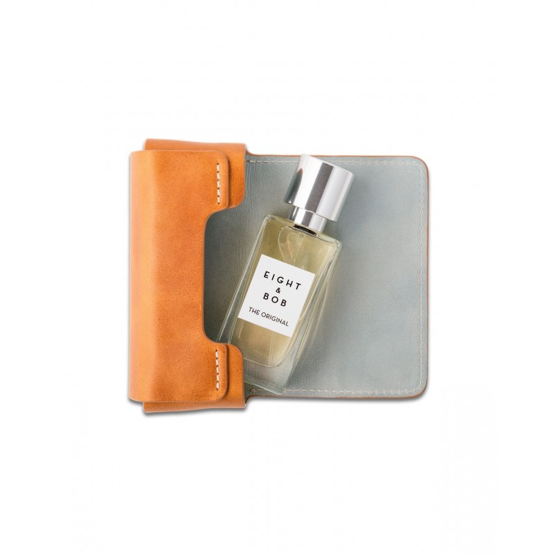 Кожаный футляр имеет светло-коричневый цвет снаружи и светло-голубой внутри.